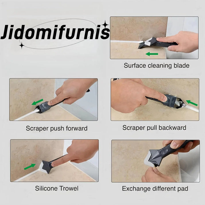 Answer 3: This versatile tool set can be used on various surfaces including countertops, window frames, and bathroom fixtures. Its design ensures that it performs effectively on different materials, helping you achieve clean finishes everywhere you need.